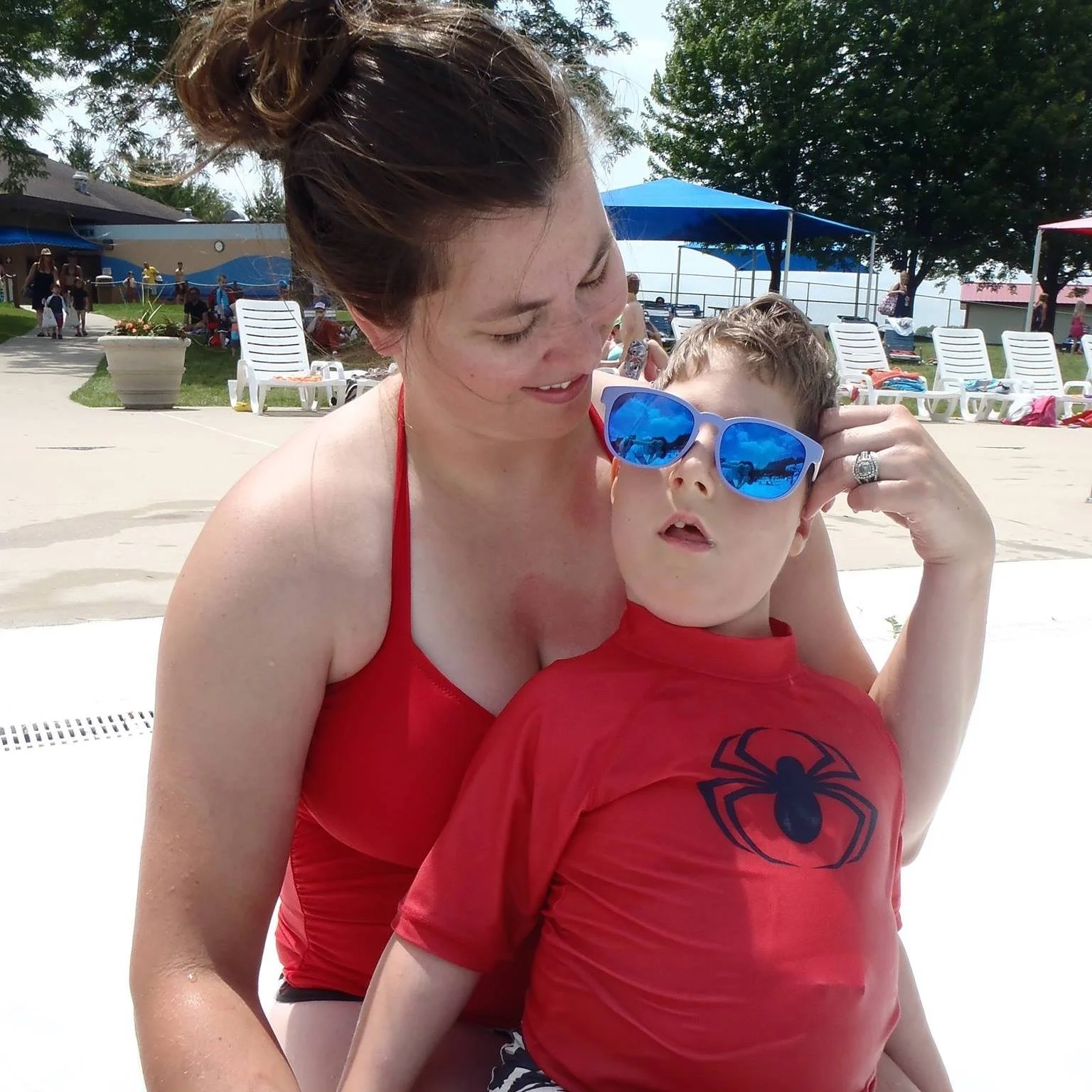 I met my husband, Michael Schmidt (Adam’s brother), in May 2009. On our first date Mike proudly shown me a photo of his month old nephew, Rylan, wearing his bilirubin glasses. With Rylan as my guide, I finished graduate school in 2013 obtaining my Masters in Art Therapy and Counseling, specializing in adaptive art process with children birth through seven with disabilities.